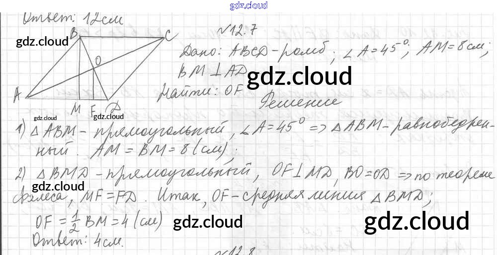 Ответ на задание 7 Учебник Геометрия за 8 (восьмой) класс Мерзляк, Поляков Алгоритм успеха Углубленный уровень 2020