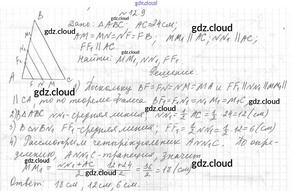 § 12. Теорема Фалеса Ответы к Главе 3. Подобие треугольников по Геометрии 8 класс Учебник Мерзляк Алгоритм успеха Углубленный уровень Вентана-граф