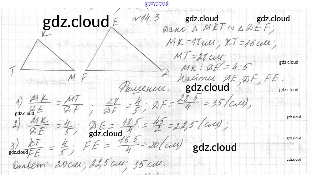 § 14. Подобные треугольники Ответы к Главе 3. Подобие треугольников по Геометрии 8 класс Учебник Мерзляк Алгоритм успеха Углубленный уровень Вентана-граф