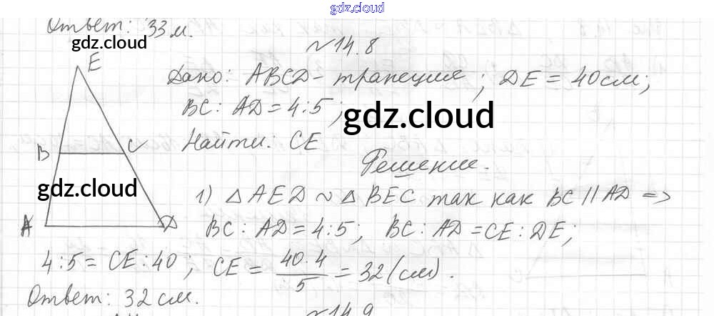 § 14. Подобные треугольники Ответы к Главе 3. Подобие треугольников по Геометрии 8 класс Учебник Мерзляк Алгоритм успеха Углубленный уровень Вентана-граф