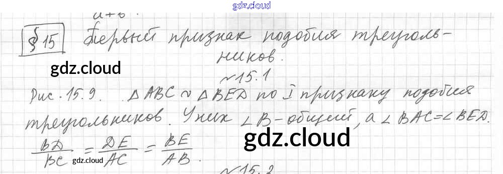 § 15. Первый признак подобия треугольников Ответы к Главе 3. Подобие треугольников по Геометрии 8 класс Учебник Мерзляк Алгоритм успеха Углубленный уровень Вентана-граф