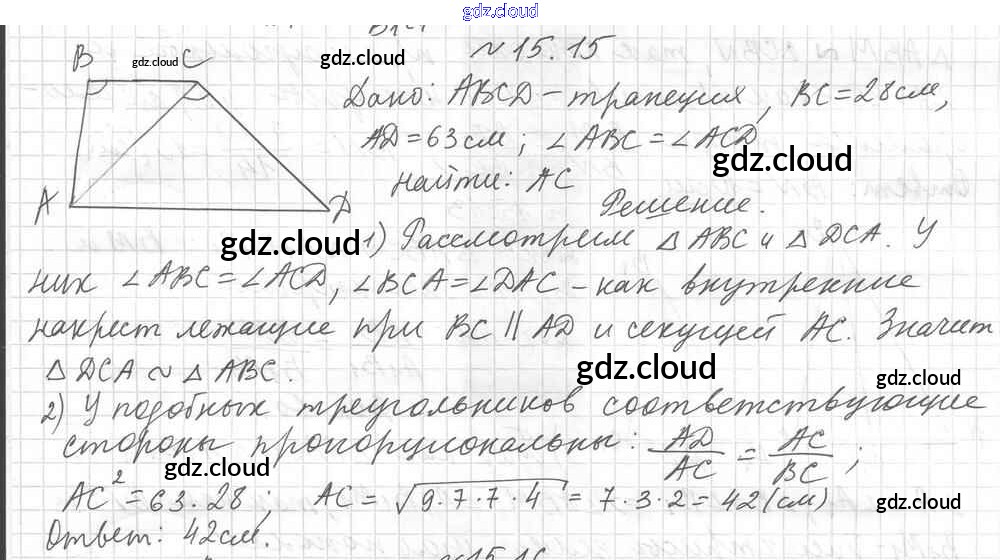 Ответ на задание 15 Учебник Геометрия за 8 (восьмой) класс Мерзляк, Поляков Алгоритм успеха Углубленный уровень 2020