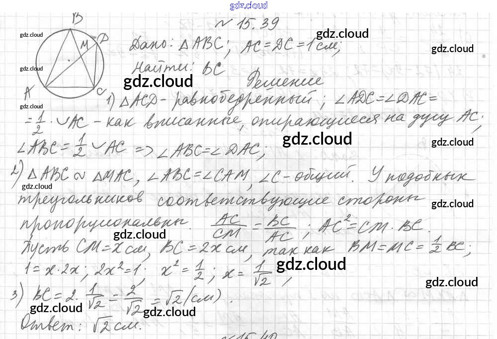 Ответ на задание 39 Учебник Геометрия за 8 (восьмой) класс Мерзляк, Поляков Алгоритм успеха Углубленный уровень 2020