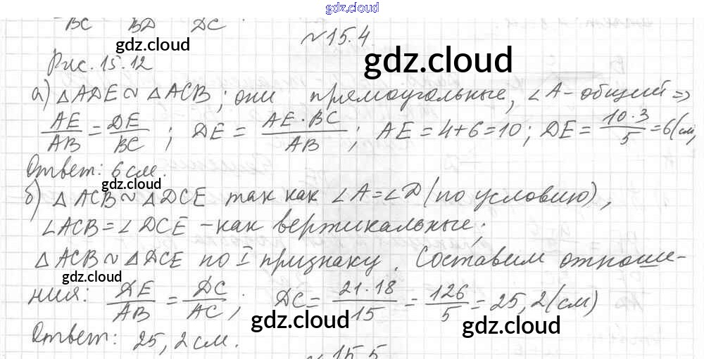 § 15. Первый признак подобия треугольников Ответы к Главе 3. Подобие треугольников по Геометрии 8 класс Учебник Мерзляк Алгоритм успеха Углубленный уровень Вентана-граф