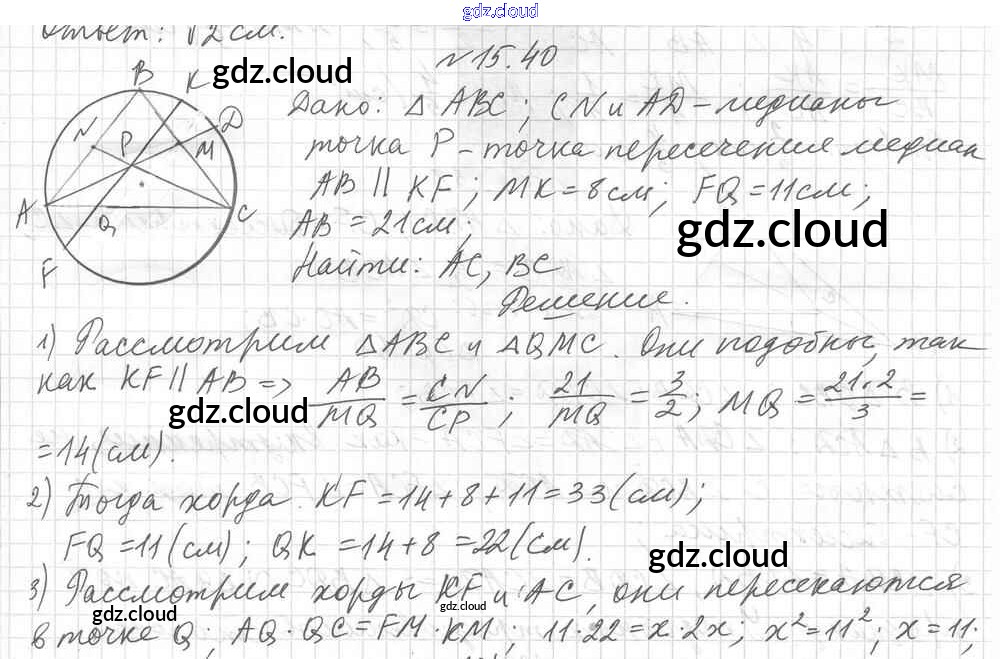 Ответ на задание 40 Учебник Геометрия за 8 (восьмой) класс Мерзляк, Поляков Алгоритм успеха Углубленный уровень 2020