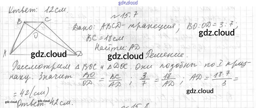 § 15. Первый признак подобия треугольников Ответы к Главе 3. Подобие треугольников по Геометрии 8 класс Учебник Мерзляк Алгоритм успеха Углубленный уровень Вентана-граф