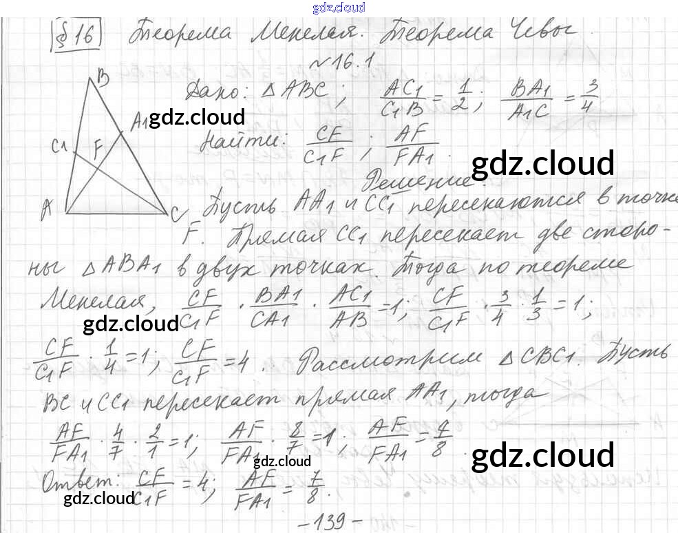 § 16. Теорема Менелая Ответы к Главе 3. Подобие треугольников по Геометрии 8 класс Учебник Мерзляк Алгоритм успеха Углубленный уровень Вентана-граф