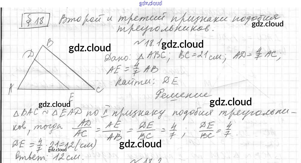 § 18. Второй и третий признаки подобия треугольников Ответы к Главе 3. Подобие треугольников по Геометрии 8 класс Учебник Мерзляк Алгоритм успеха Углубленный уровень Вентана-граф