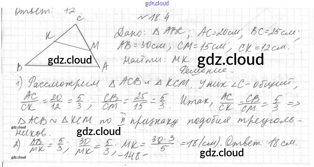 § 18. Второй и третий признаки подобия треугольников Ответы к Главе 3. Подобие треугольников по Геометрии 8 класс Учебник Мерзляк Алгоритм успеха Углубленный уровень Вентана-граф