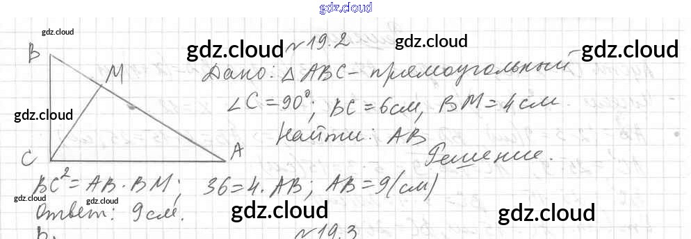§ 19. Метрические соотношения в прямоугольном треугольнике Ответы к Главе 4. Решение прямоугольных треугольников по Геометрии 8 класс Учебник Мерзляк Алгоритм успеха Углубленный уровень Вентана-граф