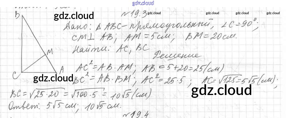 § 19. Метрические соотношения в прямоугольном треугольнике Ответы к Главе 4. Решение прямоугольных треугольников по Геометрии 8 класс Учебник Мерзляк Алгоритм успеха Углубленный уровень Вентана-граф