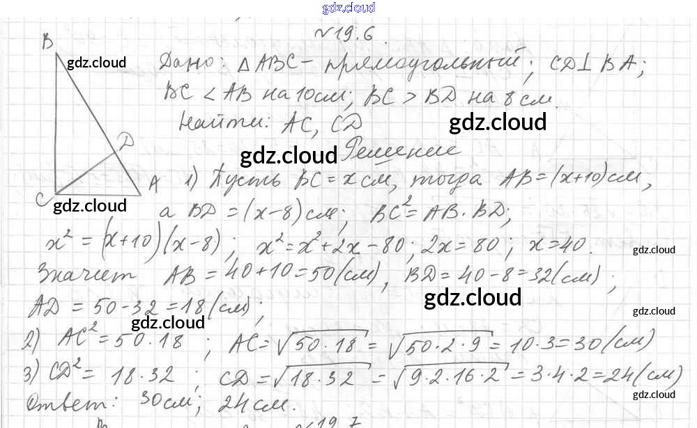 § 19. Метрические соотношения в прямоугольном треугольнике Ответы к Главе 4. Решение прямоугольных треугольников по Геометрии 8 класс Учебник Мерзляк Алгоритм успеха Углубленный уровень Вентана-граф