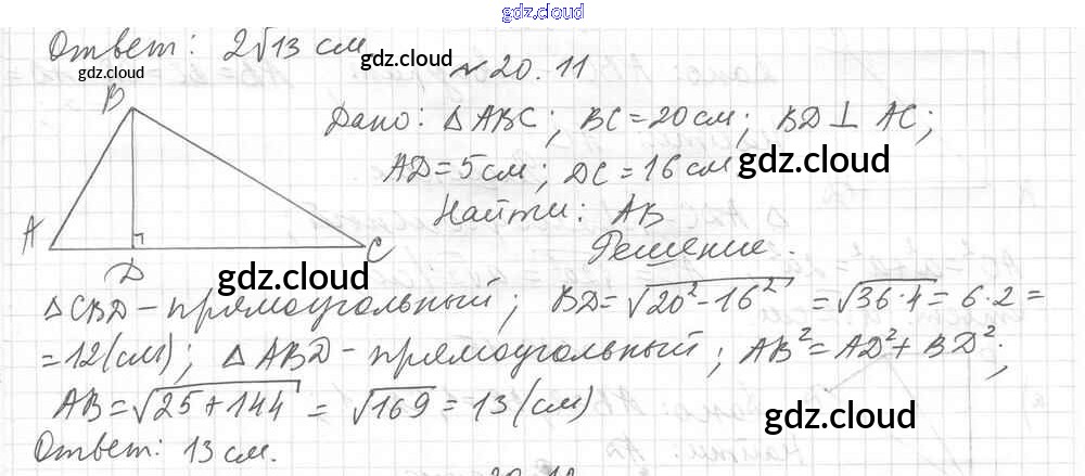 § 20. Теорема Пифагора Ответы к Главе 4. Решение прямоугольных треугольников по Геометрии 8 класс Учебник Мерзляк Алгоритм успеха Углубленный уровень Вентана-граф