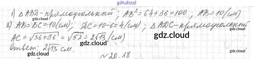 § 20. Теорема Пифагора Ответы к Главе 4. Решение прямоугольных треугольников по Геометрии 8 класс Учебник Мерзляк Алгоритм успеха Углубленный уровень Вентана-граф
