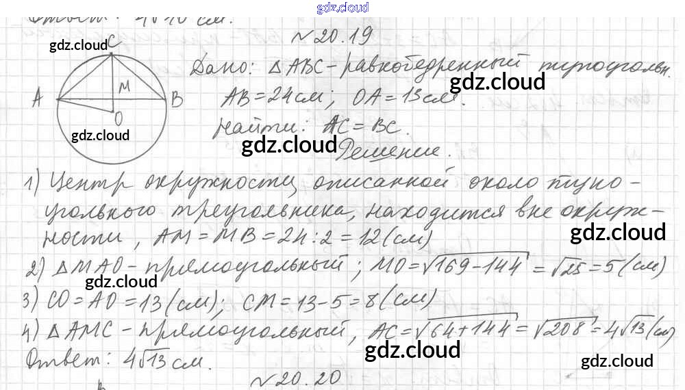 § 20. Теорема Пифагора Ответы к Главе 4. Решение прямоугольных треугольников по Геометрии 8 класс Учебник Мерзляк Алгоритм успеха Углубленный уровень Вентана-граф