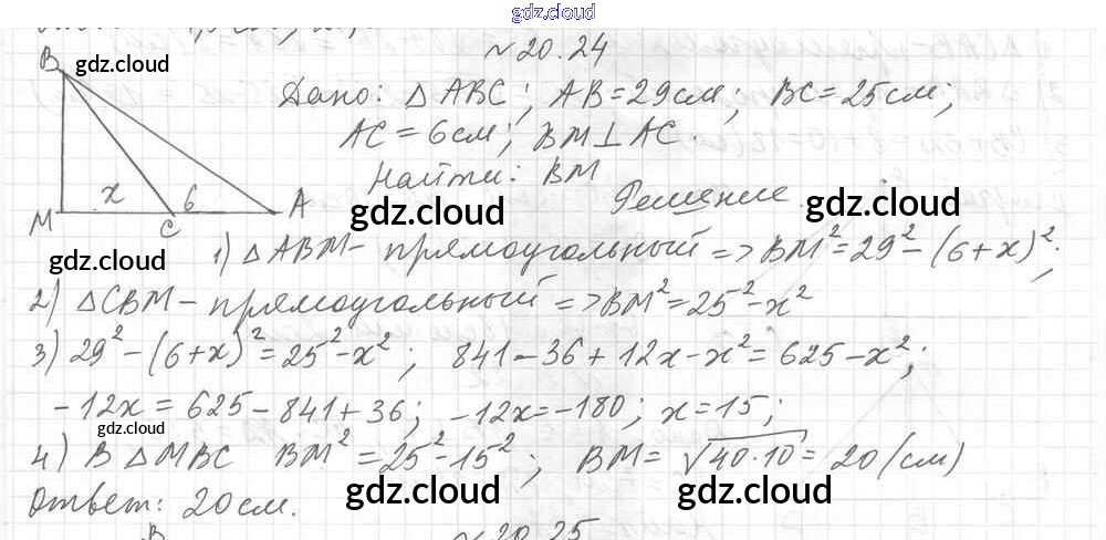 § 20. Теорема Пифагора Ответы к Главе 4. Решение прямоугольных треугольников по Геометрии 8 класс Учебник Мерзляк Алгоритм успеха Углубленный уровень Вентана-граф