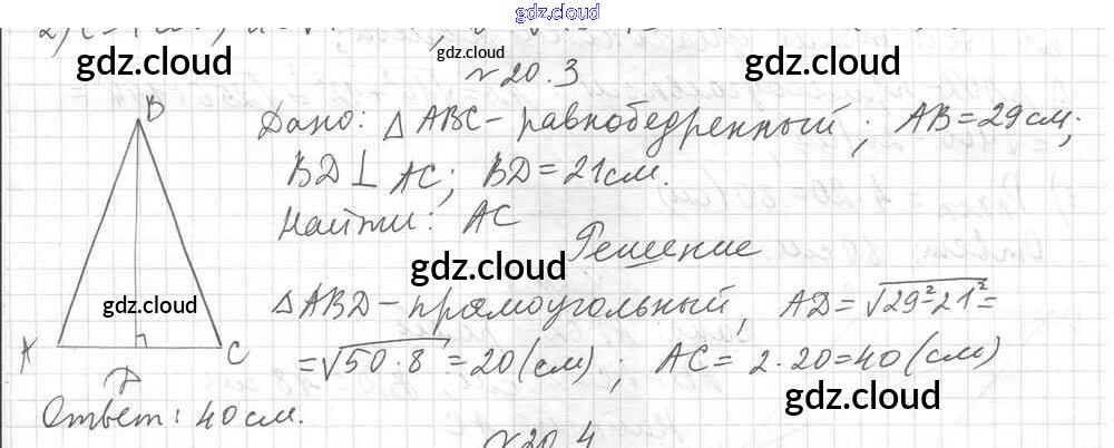 § 20. Теорема Пифагора Ответы к Главе 4. Решение прямоугольных треугольников по Геометрии 8 класс Учебник Мерзляк Алгоритм успеха Углубленный уровень Вентана-граф