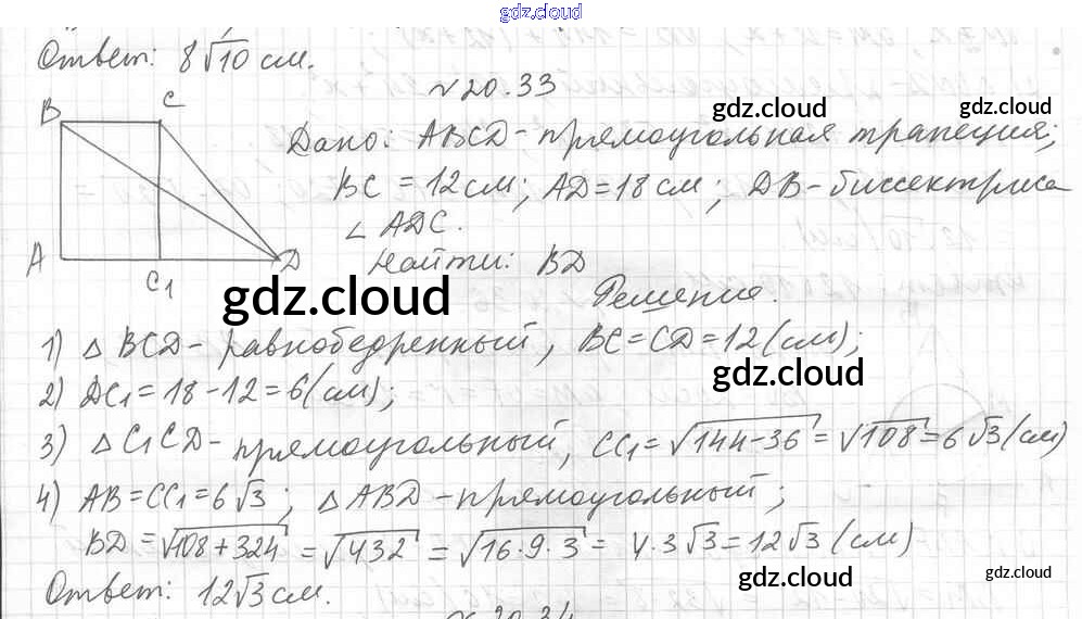 Ответ на задание 33 Учебник Геометрия за 8 (восьмой) класс Мерзляк, Поляков Алгоритм успеха Углубленный уровень 2020