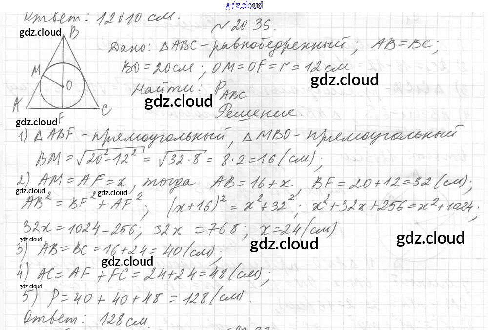 Ответ на задание 36 Учебник Геометрия за 8 (восьмой) класс Мерзляк, Поляков Алгоритм успеха Углубленный уровень 2020