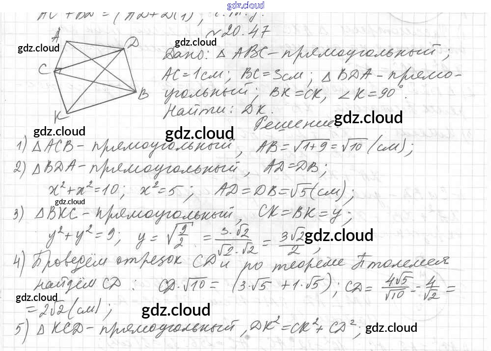 § 20. Теорема Пифагора Ответы к Главе 4. Решение прямоугольных треугольников по Геометрии 8 класс Учебник Мерзляк Алгоритм успеха Углубленный уровень Вентана-граф