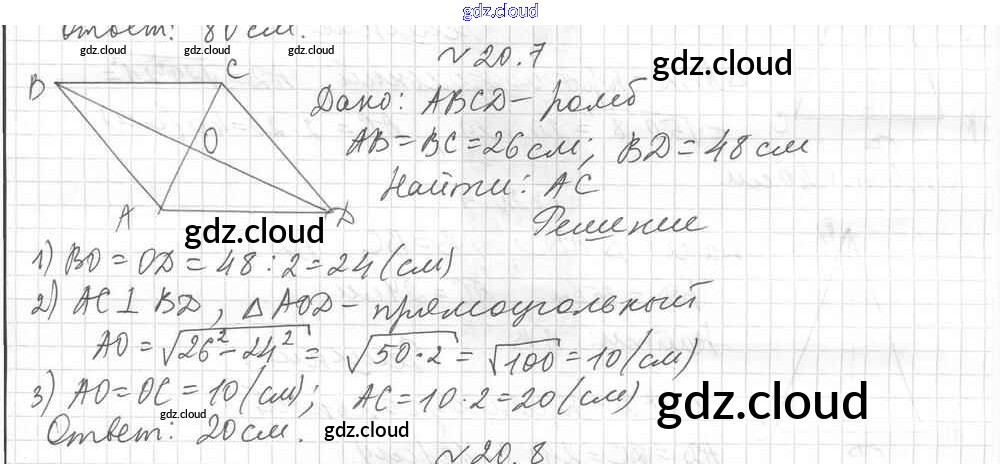 § 20. Теорема Пифагора Ответы к Главе 4. Решение прямоугольных треугольников по Геометрии 8 класс Учебник Мерзляк Алгоритм успеха Углубленный уровень Вентана-граф