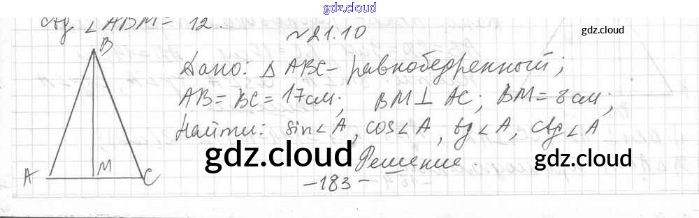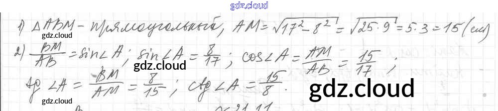 § 21. Тригонометрические функции острого угла прямоугольного треугольника Ответы к Главе 4. Решение прямоугольных треугольников по Геометрии 8 класс Учебник Мерзляк Алгоритм успеха Углубленный уровень Вентана-граф