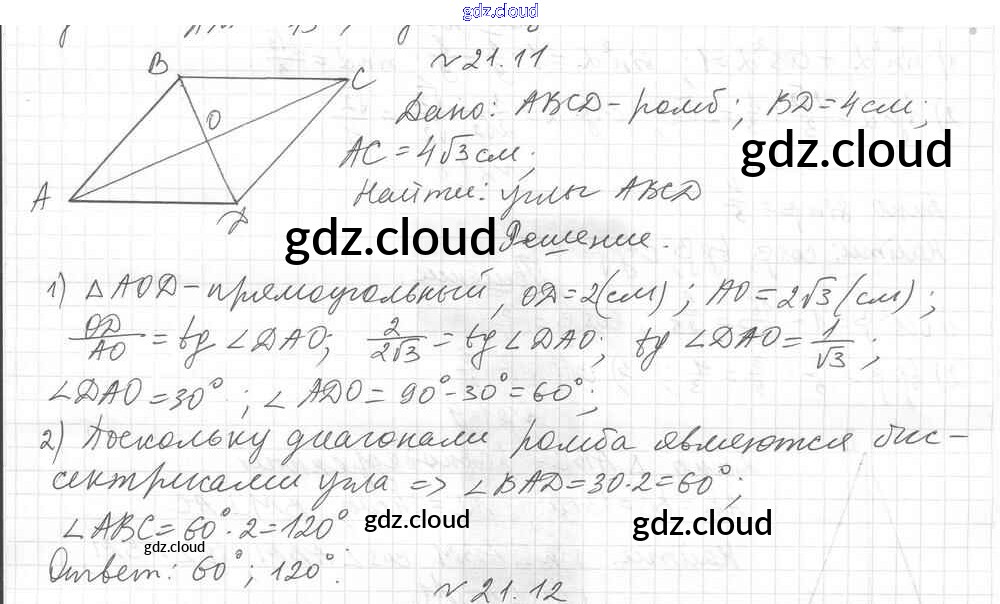§ 21. Тригонометрические функции острого угла прямоугольного треугольника Ответы к Главе 4. Решение прямоугольных треугольников по Геометрии 8 класс Учебник Мерзляк Алгоритм успеха Углубленный уровень Вентана-граф