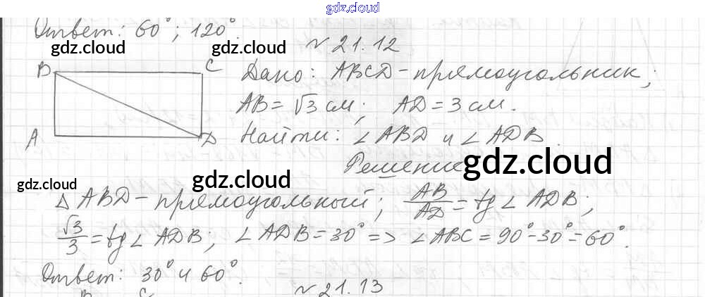 § 21. Тригонометрические функции острого угла прямоугольного треугольника Ответы к Главе 4. Решение прямоугольных треугольников по Геометрии 8 класс Учебник Мерзляк Алгоритм успеха Углубленный уровень Вентана-граф