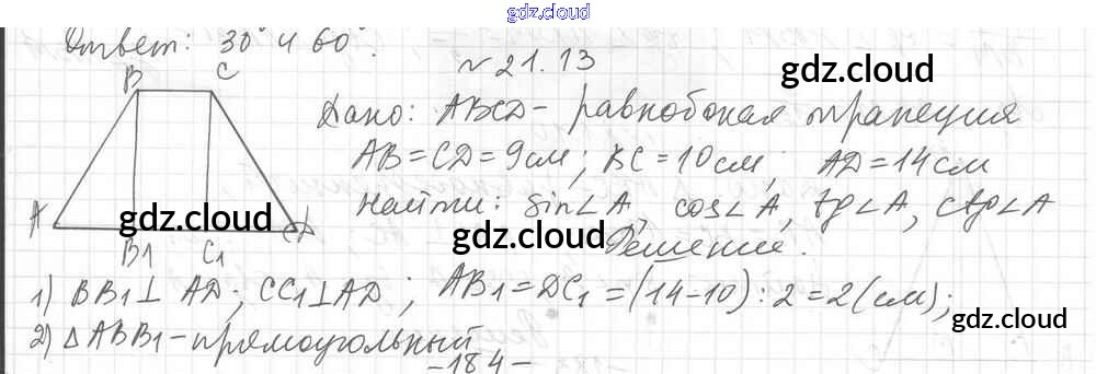 § 21. Тригонометрические функции острого угла прямоугольного треугольника Ответы к Главе 4. Решение прямоугольных треугольников по Геометрии 8 класс Учебник Мерзляк Алгоритм успеха Углубленный уровень Вентана-граф