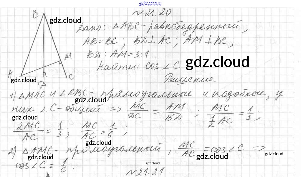 § 21. Тригонометрические функции острого угла прямоугольного треугольника Ответы к Главе 4. Решение прямоугольных треугольников по Геометрии 8 класс Учебник Мерзляк Алгоритм успеха Углубленный уровень Вентана-граф
