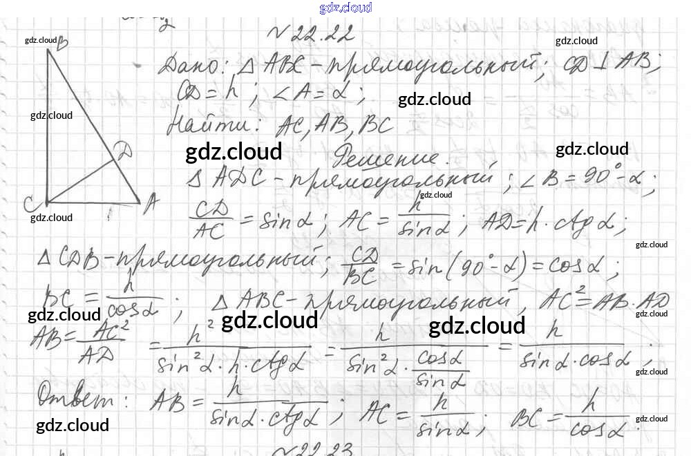 § 22. Решение прямоугольных треугольников Ответы к Главе 4. Решение прямоугольных треугольников по Геометрии 8 класс Учебник Мерзляк Алгоритм успеха Углубленный уровень Вентана-граф
