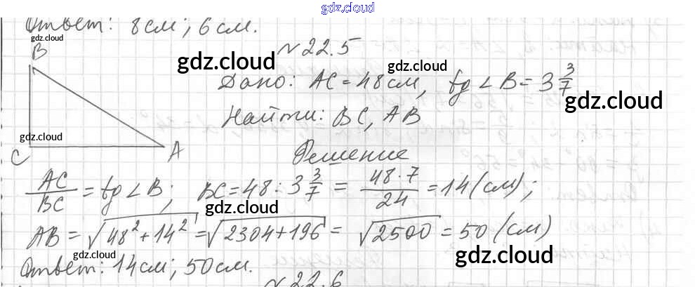 § 22. Решение прямоугольных треугольников Ответы к Главе 4. Решение прямоугольных треугольников по Геометрии 8 класс Учебник Мерзляк Алгоритм успеха Углубленный уровень Вентана-граф