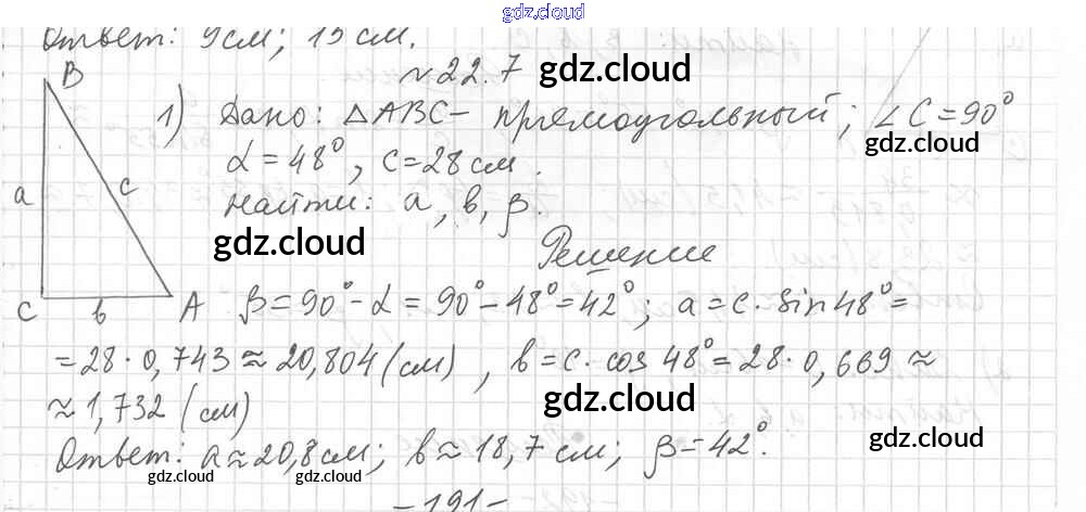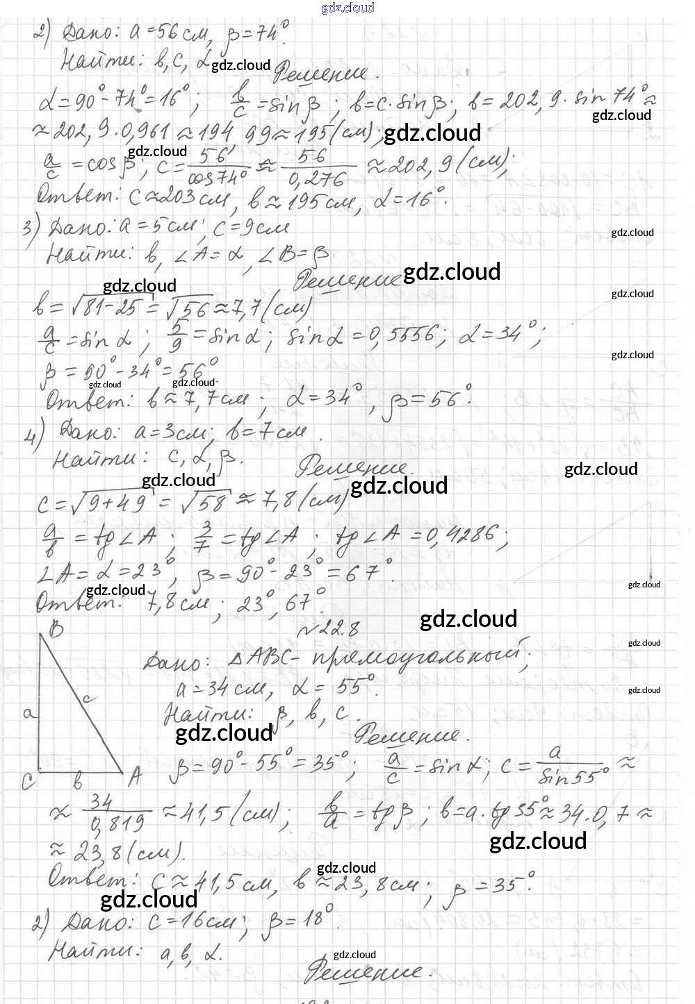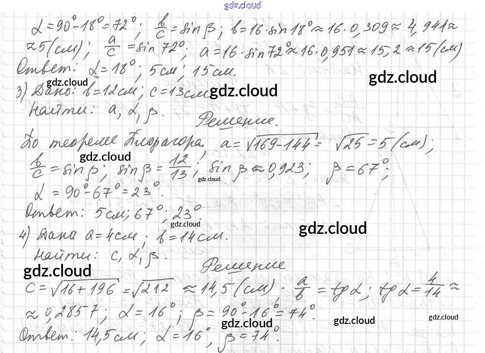§ 22. Решение прямоугольных треугольников Ответы к Главе 4. Решение прямоугольных треугольников по Геометрии 8 класс Учебник Мерзляк Алгоритм успеха Углубленный уровень Вентана-граф