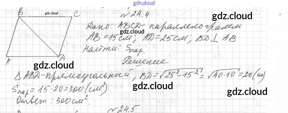 § 24. Площадь параллелограмма Ответы к Главе 5. Площадь многоугольника по Геометрии 8 класс Учебник Мерзляк Алгоритм успеха Углубленный уровень Вентана-граф