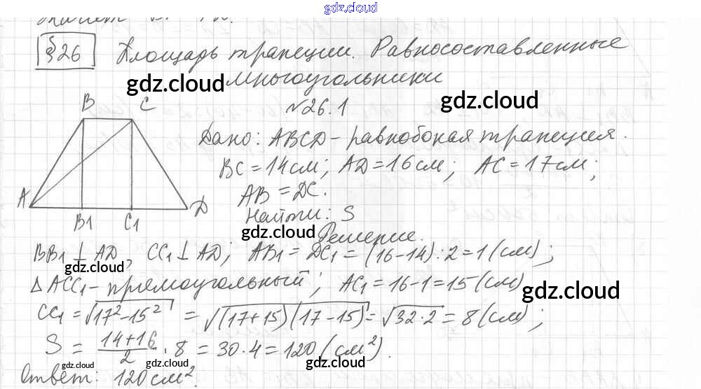 § 26. Площадь трапеции Ответы к Главе 5. Площадь многоугольника по Геометрии 8 класс Учебник Мерзляк Алгоритм успеха Углубленный уровень Вентана-граф