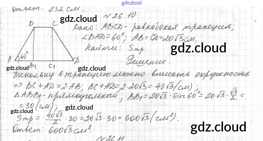 § 26. Площадь трапеции Ответы к Главе 5. Площадь многоугольника по Геометрии 8 класс Учебник Мерзляк Алгоритм успеха Углубленный уровень Вентана-граф