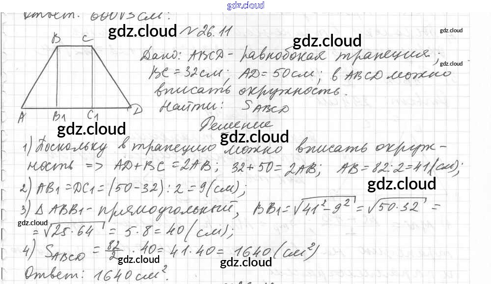 § 26. Площадь трапеции Ответы к Главе 5. Площадь многоугольника по Геометрии 8 класс Учебник Мерзляк Алгоритм успеха Углубленный уровень Вентана-граф