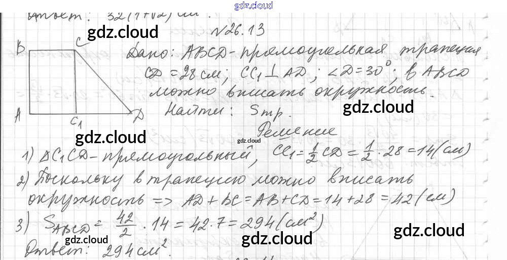 § 26. Площадь трапеции Ответы к Главе 5. Площадь многоугольника по Геометрии 8 класс Учебник Мерзляк Алгоритм успеха Углубленный уровень Вентана-граф