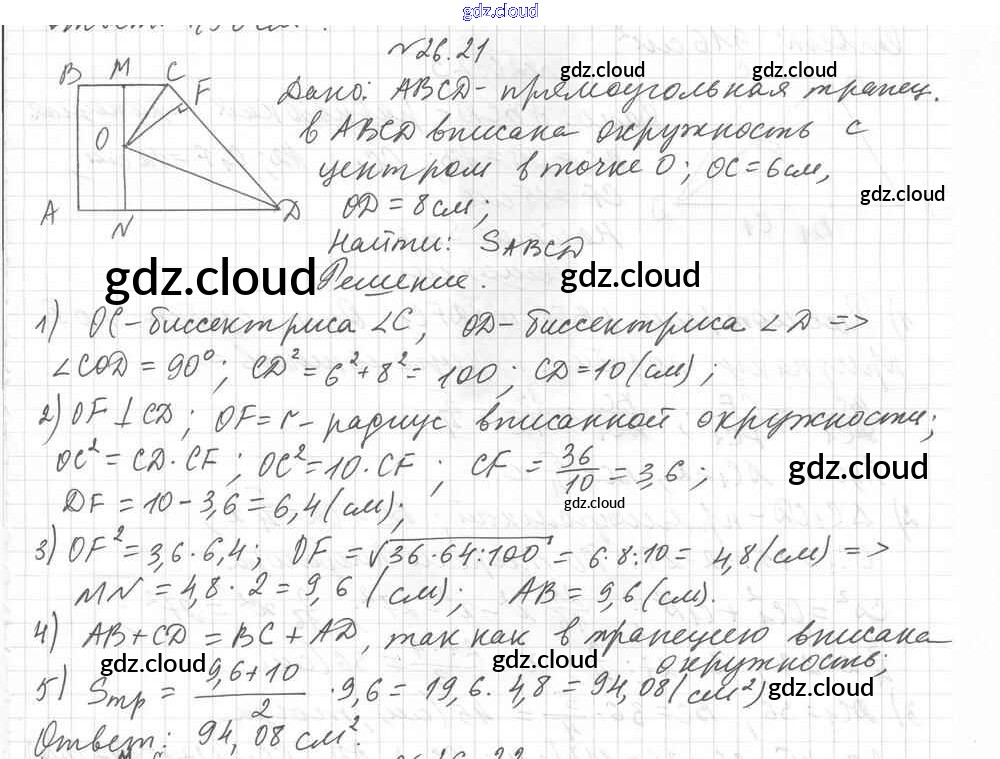 § 26. Площадь трапеции Ответы к Главе 5. Площадь многоугольника по Геометрии 8 класс Учебник Мерзляк Алгоритм успеха Углубленный уровень Вентана-граф