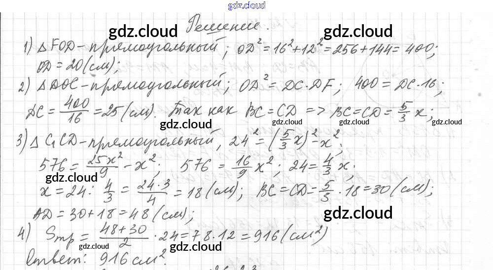 § 26. Площадь трапеции Ответы к Главе 5. Площадь многоугольника по Геометрии 8 класс Учебник Мерзляк Алгоритм успеха Углубленный уровень Вентана-граф