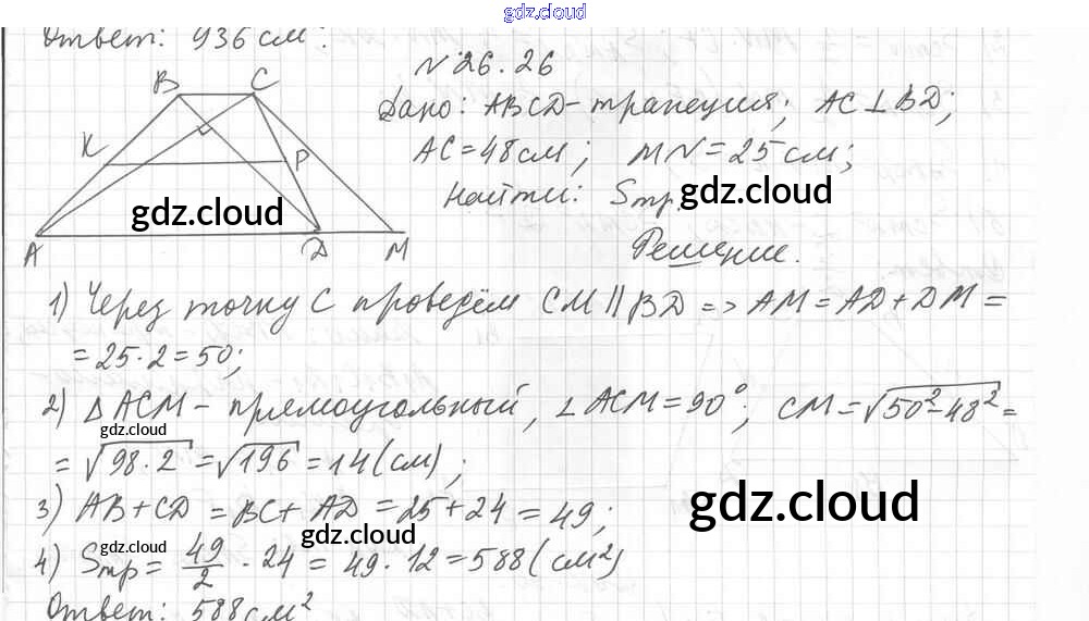 Ответ на задание 26 Учебник Геометрия за 8 (восьмой) класс Мерзляк, Поляков Алгоритм успеха Углубленный уровень 2020