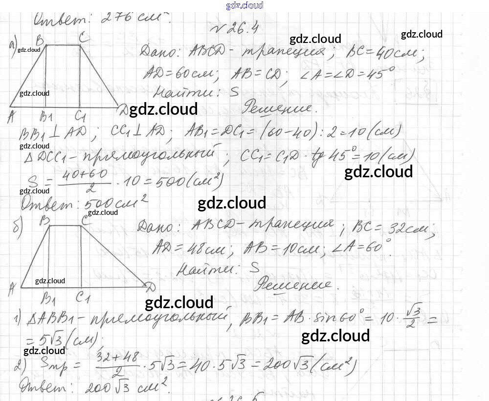 § 26. Площадь трапеции Ответы к Главе 5. Площадь многоугольника по Геометрии 8 класс Учебник Мерзляк Алгоритм успеха Углубленный уровень Вентана-граф