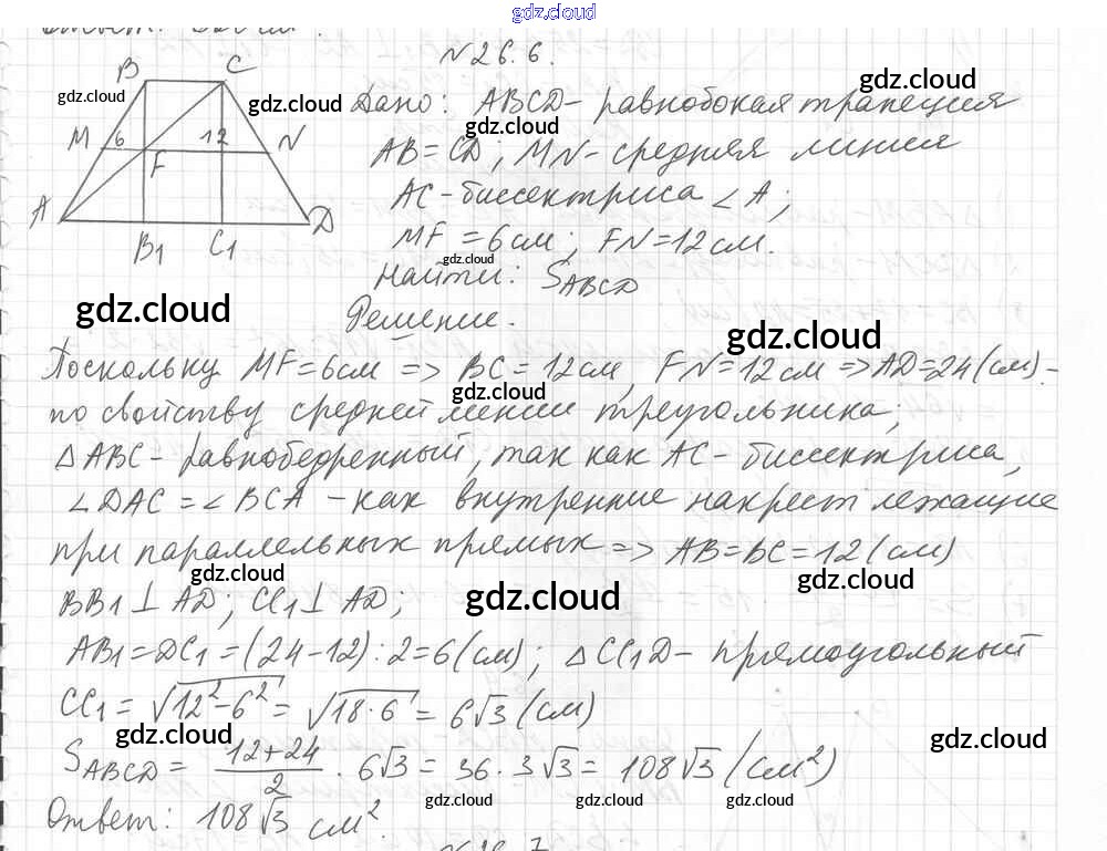 § 26. Площадь трапеции Ответы к Главе 5. Площадь многоугольника по Геометрии 8 класс Учебник Мерзляк Алгоритм успеха Углубленный уровень Вентана-граф