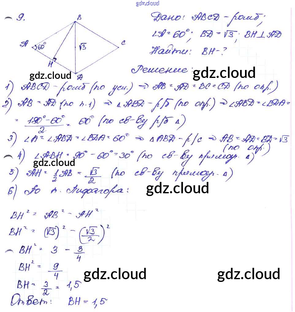 Ответ на задание 9 Дидактические материалы Геометрия за 8 (восьмой) класс Зив, Мейлер 2016
