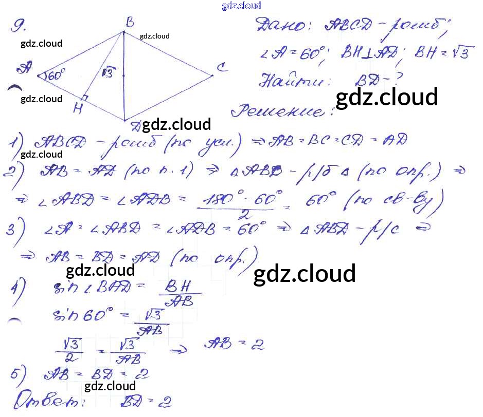 Ответ на задание 9 Дидактические материалы Геометрия за 8 (восьмой) класс Зив, Мейлер 2016