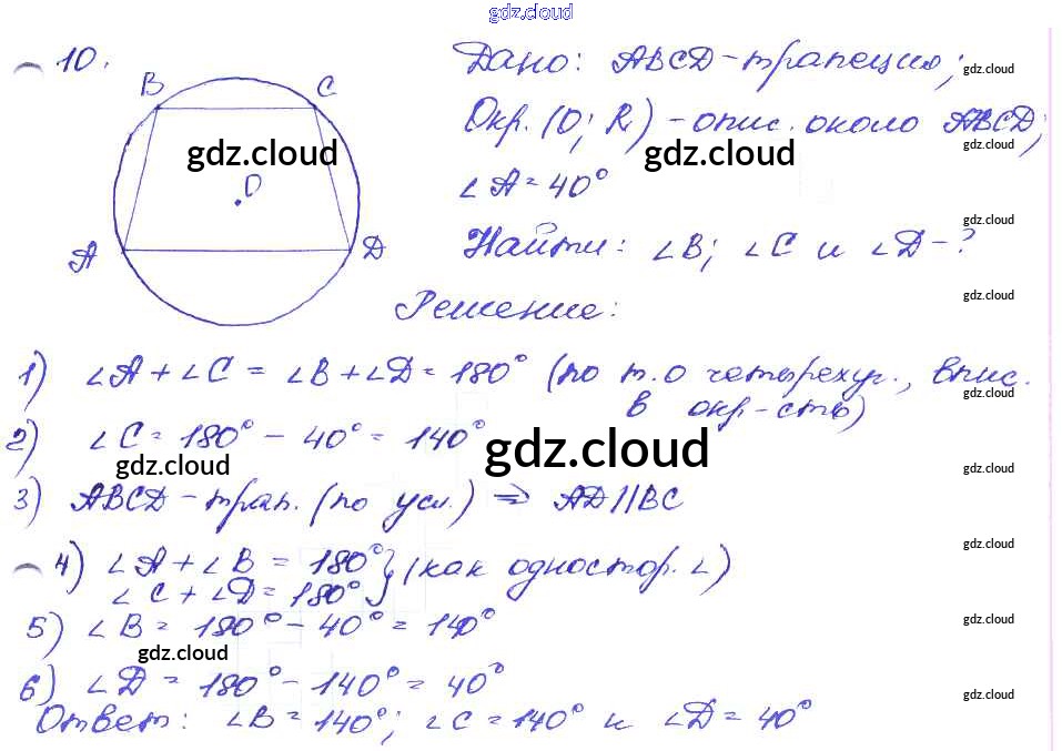 Ответ на задание 10 Дидактические материалы Геометрия за 8 (восьмой) класс Зив, Мейлер 2016