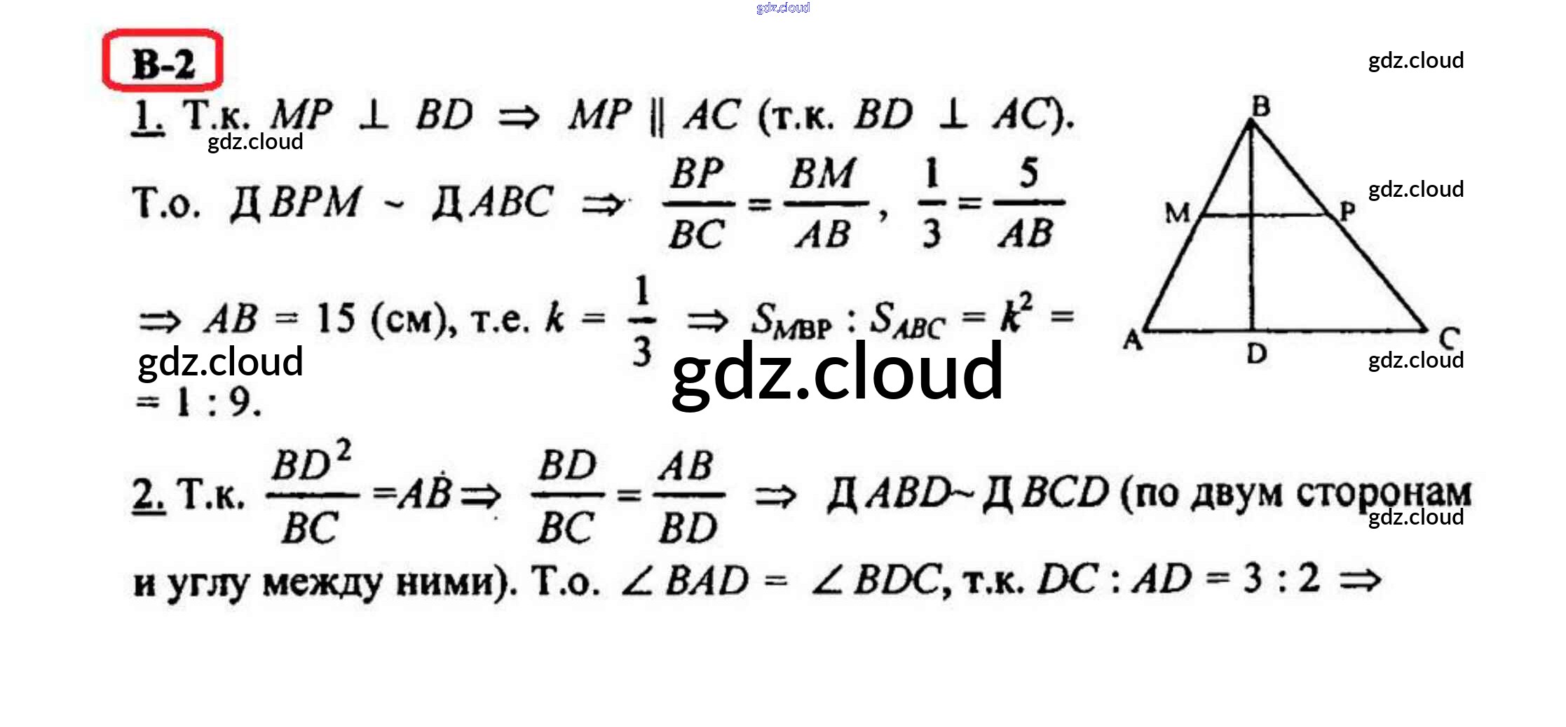 Ответ на задание Вариант 2 Дидактические материалы Геометрия за 8 (восьмой) класс Зив, Мейлер 2016