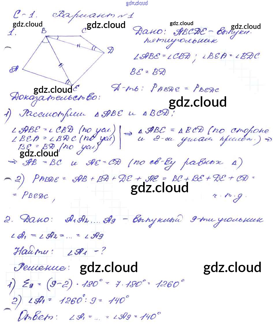 Ответ на задание вариант-1 Дидактические материалы Геометрия за 8 (восьмой) класс Зив, Мейлер 2016