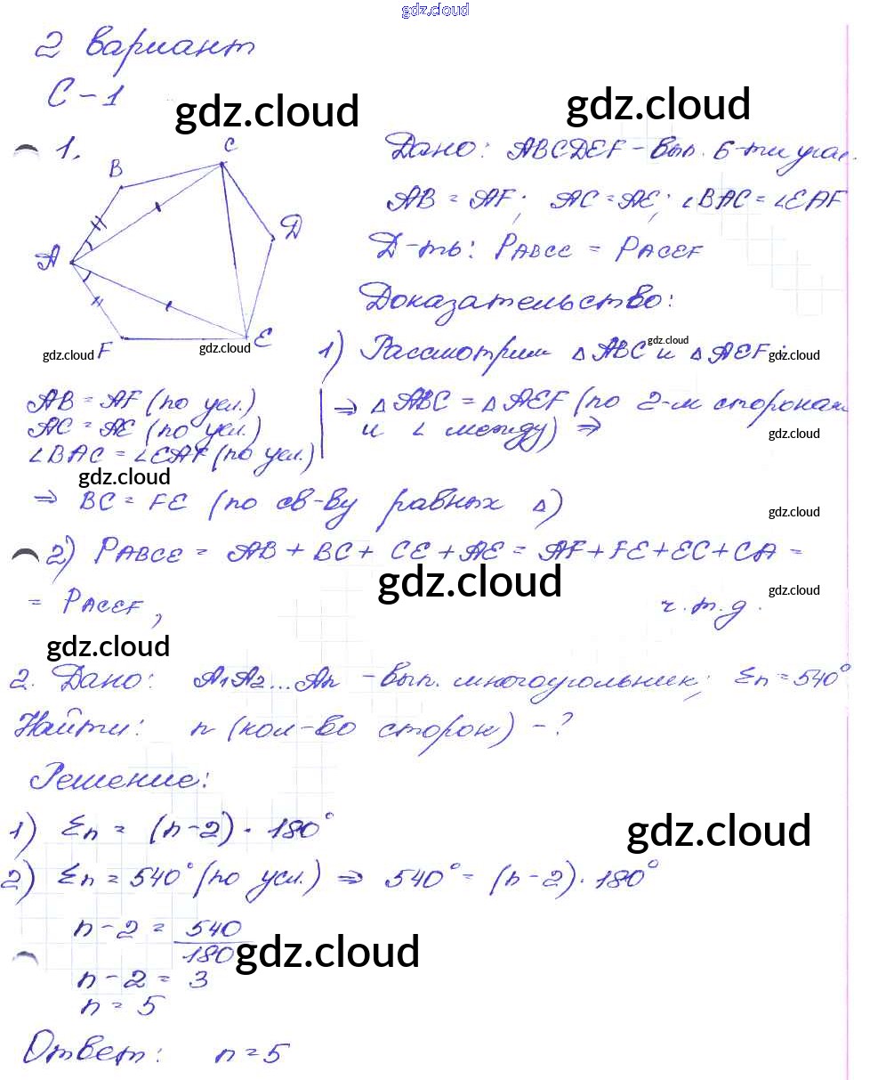 СР №1. Многоугольник, четырехугольник Ответы к Самостоятельным работам по Геометрии 8 класс Дидактические материалы Зив Просвещение
