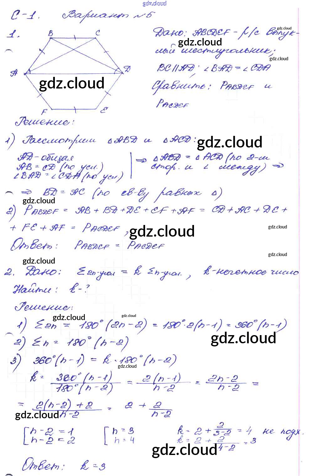 СР №1. Многоугольник, четырехугольник Ответы к Самостоятельным работам по Геометрии 8 класс Дидактические материалы Зив Просвещение